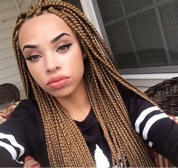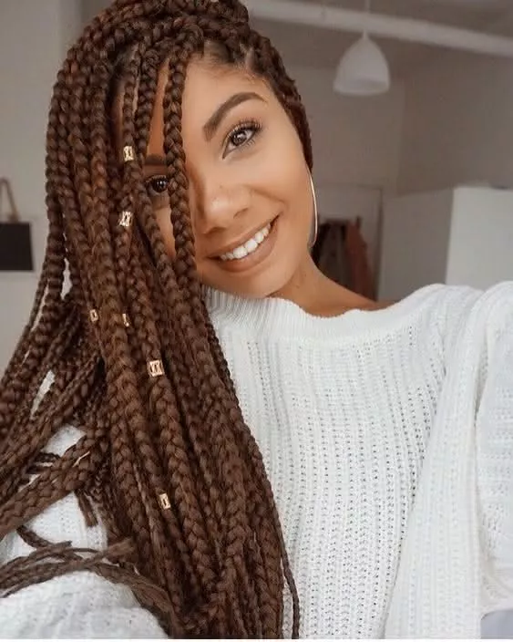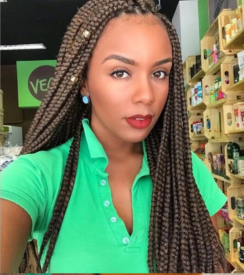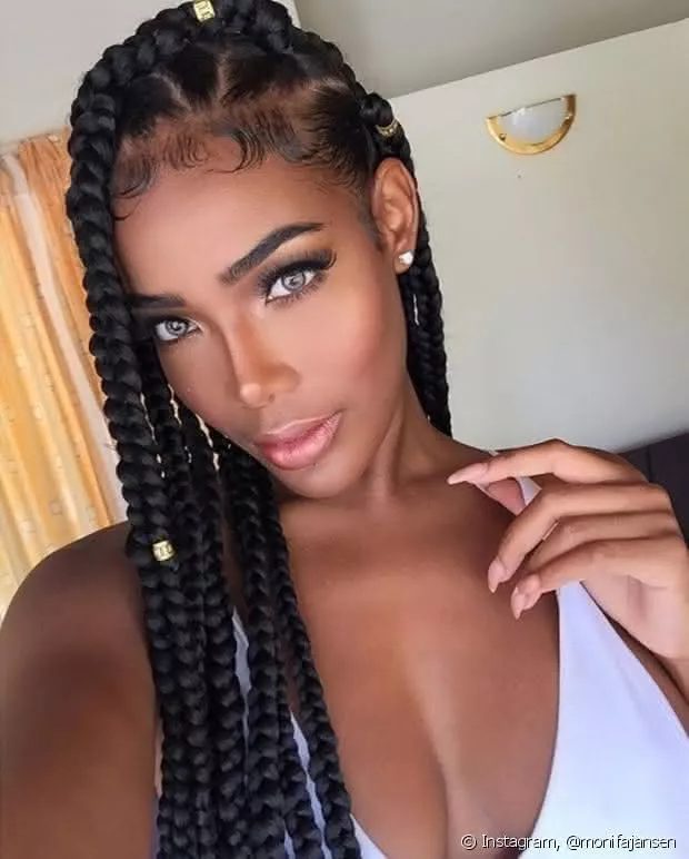 Então não se deixe abalar. Abuse em tranças ou coques altos e super estilosos, a chave de tudo é se sentir bem e deixar esses cabelões crescerem. Quando as madeixas já estiverem tomando suas formas e proporções desejadas, é só aproveitar! Bota esse cabelão para jogo e não cogite em abusar. Agora você está mais imponderada, maravilhosa, ousada e o principal… com seus cabelos saudáveis. Daí é só aproveitar, cuide bem deles e mantenha sempre sua autoestima elevada. Comentários maldosos podem acontecer, mas basta ignora-los, pois, os comentários do bem e elogios é o que não vão faltar. O legal da box braids são as alternativas de cores que você pode usar. Muitas mulheres preferem pôr tranças coloridas ao invés do preto comum. As cores mais utilizadas são o loiro, vermelho, rosa, mas você também pode brincar com as cores e misturar. Geralmente se usa tranças mais longas, mas você pode optar por menores. Tanto a cor e cumprimento é de acordo com o seu gosto! mas claro que quanto maior mais caro vai sair! Lavagem e Hidratação do cabelo feminino com trançasMuita gente pergunta se pode lavar o cabelo enquanto ele estiver trançado, e não só pode como deve. Mas cuidado, apenas utilize shampoo e seque apenas a raiz com auxílio do secador. Apesar de ser lindas, você precisa tirar a sua box braids em torno de dois meses, é essencial deixar os seus fios naturais respirarem e hidratados Como lavar e secar suas tranças afroSe você se questiona sobre a limpeza dos fios, já te contamos como lavar e secar suas tranças afro. Na verdade o procedimento é bem simples, basta utilizar um shampoo e esfregar da forma mais delicada possível. Também é possível deixar uma preparação de água com condicionador para acalmar os fios. Veja alguns modelos de cabelos box braids que separamos |